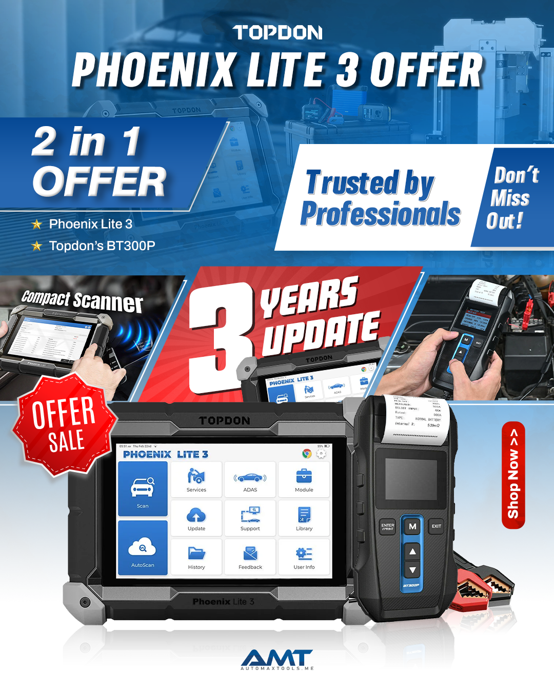 Bundle Deal: TOPDON Lite 3 Diagnostic Tool + BT300 Battery Tester